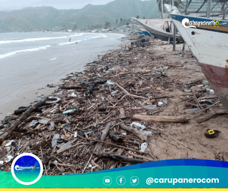 La «playa Arriba» del Morro de Puerto Santo, una de las más visitadas y apreciadas por los habitantes del municipio Arismendi, se encuentra en un estado deplorable debido a la gran cantidad de desperdicios que arrastraron las recientes lluvias desde el río hasta el mar. Esta situación no solo afecta la belleza natural del lugar, sino que también pone en riesgo la salud del ecosistema marino y la vida de miles de especies que habitan en él.