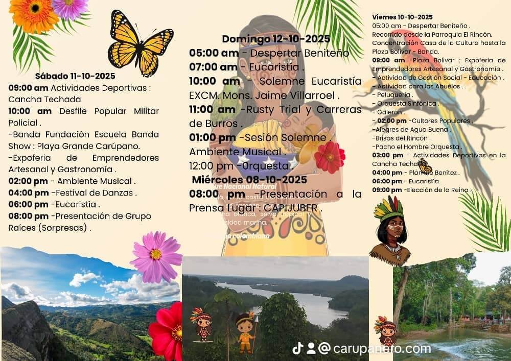 Las festividades darán inicio el viernes 10 de octubre de 2025 con un «Despertar Beniteño» a las 05:00 am, seguido de un recorrido desde la Parroquia El Rincón hasta la Casa de la Cultura. El día culminará con la «Concertación Casa de la Cultura» y un desfile cívico musical hasta la Plaza Bolívar, donde se realizará una Expoferia de Emprendedores Artesanales y Gastronomía, una actividad de gestión social y un gran espectáculo musical con la Orquesta Sinfónica y gaitas en el Callejón.