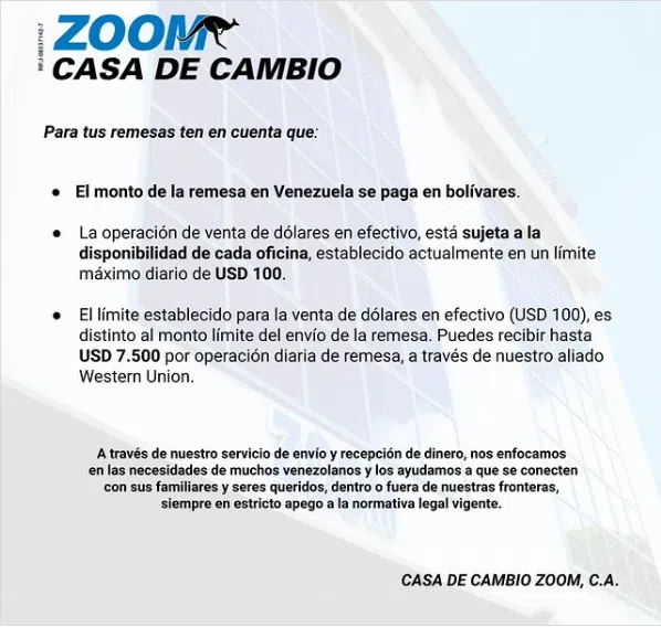 Además, aunque se permite enviar hasta USD 7.500 por operación diaria de remesa a través del aliado de ZOOM Casa de Cambio, Western Union, este límite puede resultar insuficiente para muchas familias que dependen en gran medida de las remesas para cubrir gastos importantes, como alimentos, medicinas y educación.